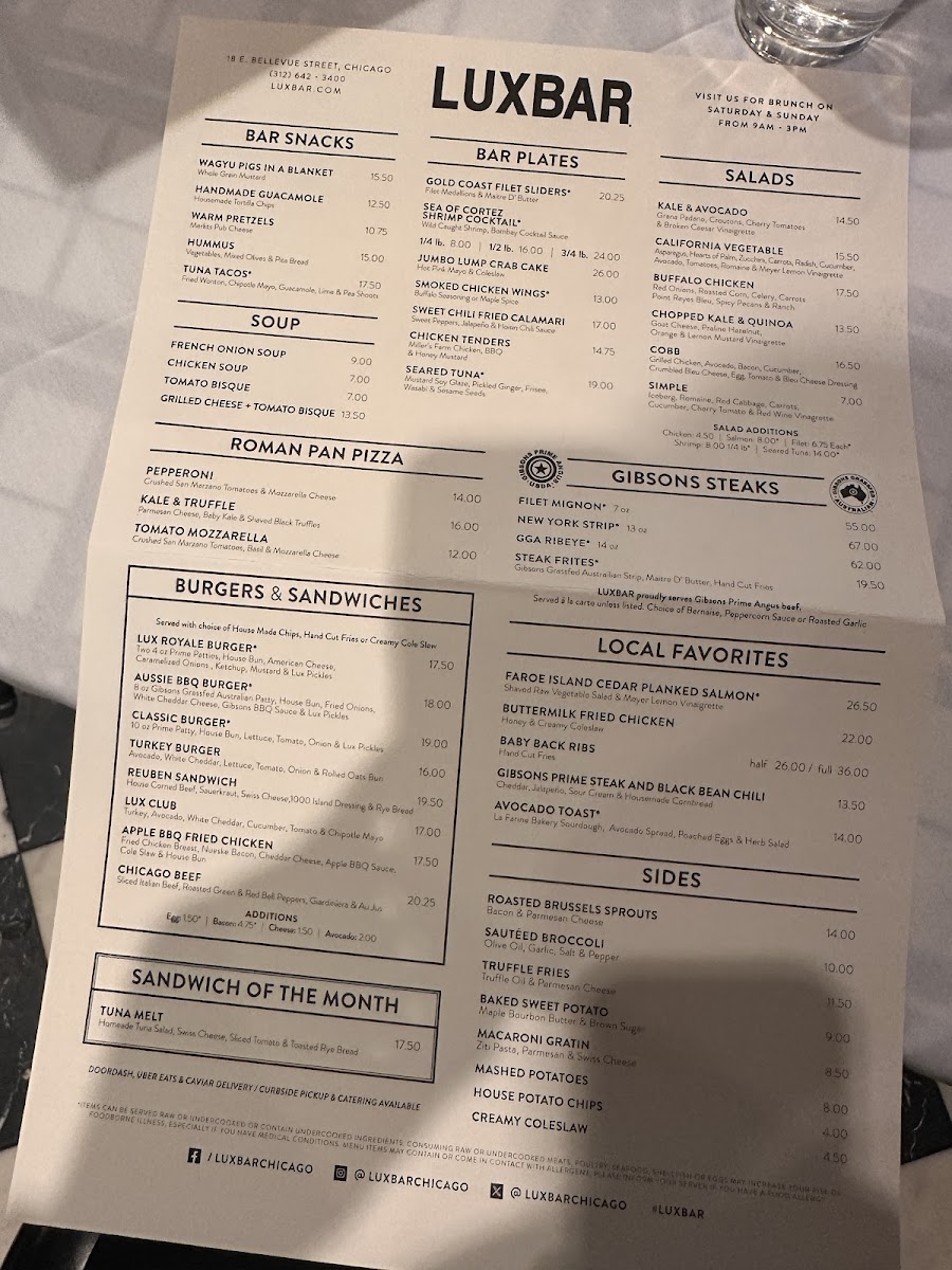 Customer experiences reflect the restaurant's dedication to service and quality. Many patrons commend the attentive and friendly staff, noting how the team creates a warm environment that makes you feel right at home. As one regular expressed, "LUXBAR has truly helped me make Chicago feel like home." This dedication to customer satisfaction, combined with consistently delicious food, makes LUXBAR a top choice for dining in the Windy City.